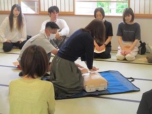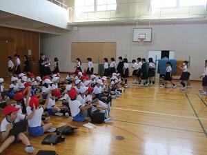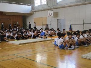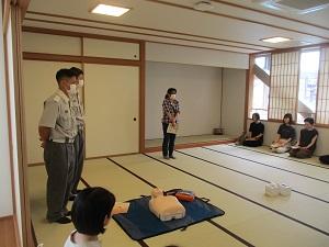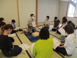 まずは午前中、3年生の保護者を対象に救急救命講習会を行いました。かほく市消防本部から2名の救命士さんを講師としてお迎えし、2組に分かれて実施しました。夏休みにはプール開放も予定しています。3年生の保護者の方にはその折に監視の協力をお願いすることになっています。どうぞよろしくお願いします。