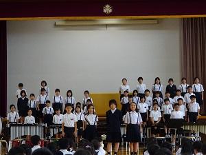 その後、5年生の音楽会に向けた校内発表会を行いました。今年の能登半島地震を風化させないようにとの思いを込めた合唱「ハナミズキ」合奏「希空」。鎮魂と勇気を伝えているかのような素敵な音楽に心打たれました。ぜひ本番でも頑張ってくださいね。