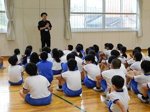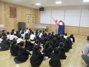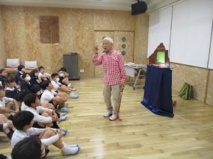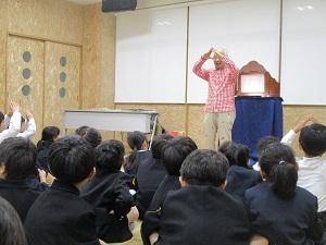 本校では毎年、紙芝居で有名なのまりんさんこと野間成之さんに来ていただき、1年生と6年生に紙芝居をしていただいています。とてもお忙しいのまりんさんですが、今年も何とかスケジュールの都合がついて、紙芝居をしていただくことができました。