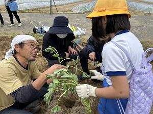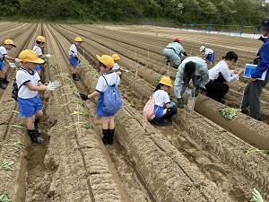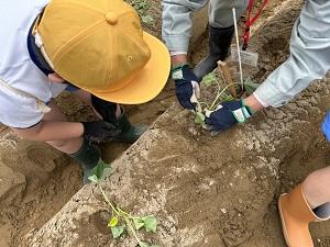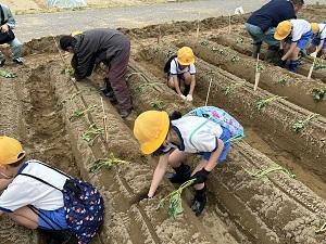 2年生が、かほく市のふるさと事業でかほっくりの苗を植えに行きました。