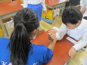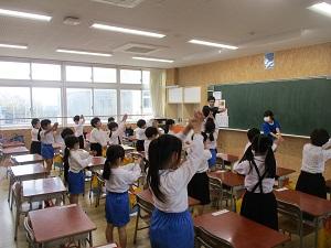 今日は水曜日。朝読書の代わりに身体を動かす「げんきっず体操」の日です。げんきっず委員会の皆さんが、各クラスに分かれて、頑張ってくれました。昨日が遠足だったのに、みんな朝からとっても元気です。