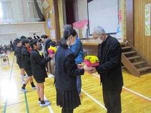 会に先立ち、日ごろからお世話になっているボランティアの皆さんやゲストティーチャー、見守り隊の皆さんをご招待しての「感謝の会」が行われました。今日参加してくださった方には、ささやかなプレゼントとお花鉢をお送りしました。いつも七塚小学校の子どもたちのために、本当にありがとうございます。