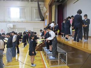 いよいよ明日は、「6年生を送る会」の本番です。今日は終日体育館使用は禁止となり、どんどん準備が進められました。出し物の準備も、本番さながらの緊張感でいっぱいです。明日の本番に向けて、一生懸命な七塚っ子たちです