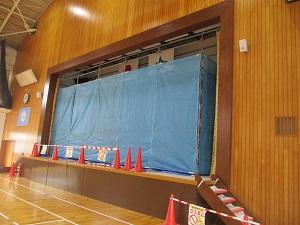 さて6年生を送る会が終わり、次はいよいよ卒業式です。そこで今日から、地震で被害を受けた舞台上一文字の修繕工事が始まりました。今週1週間は、体育館の舞台側は使用せず修理をします。体育の時間も、校舎側の半分だけを使用しての授業となります。送る会の練習もあり、なかなか工事ができませんでしたが、6年生の卒業式に間に合うように直してくださるそうです。どうぞよろしくお願いします。