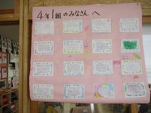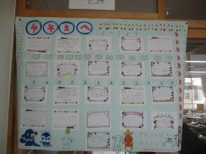 今日も寒い一日でしたね。学校を回っていたら、6年生が「送る会」のお礼の掲示を各学年に贈っていました。在校生の感謝の気持ちに応える姿、素敵ですね。