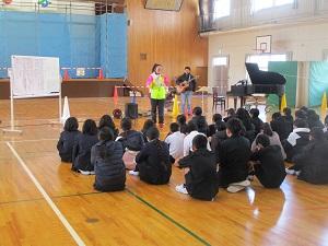 さて今日の3・4限目は、ボイストレーナーの堀江さんとギタリストの高井さんをお招きして、6年生の卒業式の曲の歌唱指導をしていただきました。堀江さんと高井さんは、今日で2回目のご指導で、前回同様、「音楽を楽しむ、自分を表現する」ということをとても大切にしてくださっています。子供たちの「表現したい、歌いたい」という気持ちを引き出し、自分からイメージして、全身で語り掛けるように歌えたらと願い、歌詞のイメージ化を図り、子供たちをリラックスさせ、全身で曲を表現できるように指導してくださいました。終わった後も子供たちと語り合い、子供たちの思いを受け止めてくださったお二人、本当にありがとうございました。