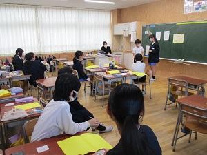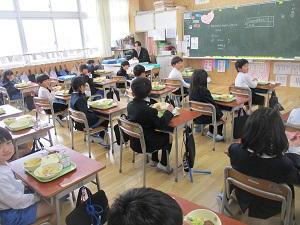 2学期に企画委員会で行った縦割り活動の勝ったチームのご褒美を考えていたところ、6年生から「いろいろな先生方と給食を食べてみたい」という話が出ました。そこで今日は、各クラスにどの先生がやってくるのかを内緒にして担任の先生以外の先生方と給食を食べる企画「ドリーム給食」を実施しました。子供たちは、どの先生がやってくるのか、わくわくしながら待っていましたよ。いつもと違う先生と給食を食べるって、こんなに嬉しいものなのですね。また子供たちの柔軟なアイディアにも驚かされました。これからも子供たち発信の楽しい企画を大切にしながら、もっと笑顔いっぱいの学校をめざしていきたいと思っています。