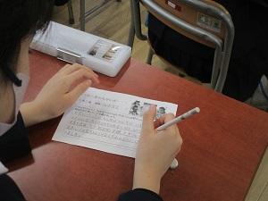 昨日お昼休みに、図書室・多目的ホールにて「家族に感謝のしおり作りの会」を行いました。