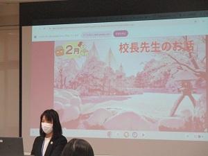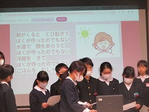 さて、今日の学校集会は感染症がまだ落ち着かないので、教室と多目的室のオンラインと集合型のハイブリット方式で行いました。つまり、表彰や委員会の発表(まなびぃず委員会、図書委員会、給食委員会)などは多目的室で、今月の詩の発表(1年生・5年生)は教室からの発信で実施したのです。学校集会も一堂に集まらなくても、色々な形で挑戦できるものなのですね。これからもタブレットを活用し、その時の実情に合わせて柔軟に対応していきたいと考えています。