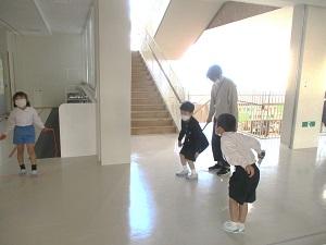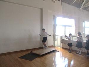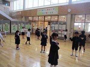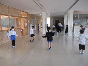 2023年12月11日 15時40分今日は一日中、雲の多いお天気でしたが、雨も降らず、子供たちは元気に外で遊んでいます。今日から、12月22日まで、縄跳びがんばり週間が始まりました。1階のホールや2階3階のシーサイドホール、小体育館などの決められた場所で、子供たちは短なわとびの練習に励んでいます。まだまだ練習を始めたばかりで手の回し方がわからない1年生に3年生が一生懸命教えてくれていました。縄を回しながら跳ぶことが難しい子には、先生が一緒に跳んであげている姿も見られました。小体育館では3年生が、ジャンピンクボードで二重跳びのコツをつかもうと練習していました。学校で行う毎日毎日の積み重ねが、高学年での素晴らしい技につながっていくのですね。積み重ねることって、本当に大切なのです。そして、できなかったことができるようになるって、とっても楽しいことだと気付いてくれたら嬉しいですね。