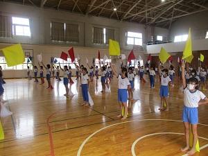 高学年は、フラッグの練習が大詰めを迎えています。フラッグの音の迫力とメリハリの利いた動きはさすがでした。これからいよいよ組体操に進みます。仕上がりが楽しみです。保護者の皆さん、お家でもぜひ励ましのお声掛けをよろしくお願いします。