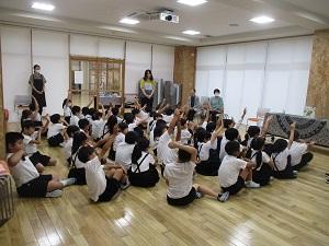 3年生は国語科で「ちいちゃんのかげおくり」という、戦争で一人ぼっちでなくなってしまう女の子のお話を学習をします。そこで今日は、お話グループやまんばさんに来ていただき、戦争に関係した本の紹介と読み聞かせもしていただきました。今日のお話は、「かき」「りんこちゃんの8月1日」「門前の民話」でした。「りんこちゃんの8月1日」は実際にあった富山大空襲の体験をもとに作った絵本です。3年生はとても真剣にお話に耳を傾けていました。いつもながらの温かい語り口にとても心惹かれるお話会でした。やまんばの皆さん、ありがとうございました。