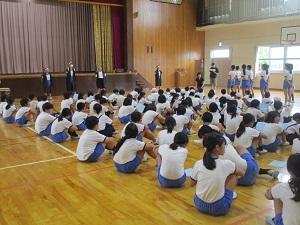 今日は中学年と高学年の表現の練習がとても素晴らしかったです。中学年は4年生の実行委員が中心となって進めています。振り返りの時にほぼ全員の手が挙っていました。運動場での練習も頑張っていました。