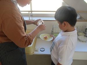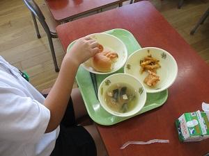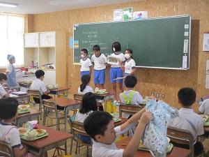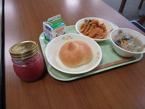 2023年9月12日 18時49分今日の給食は、パンでした。そこで今日は、6年生がお世話して作ってくれた木津桃のジャムを各学年に配り、パンにつけて食べてもらいました。6年生は、各学年に出向き、木津桃を分けたくださった西谷さんのことや木津桃の歴史について話してくれました。それを聞いた1年生は「感謝して食べます」と感想を言ってくれました。木津桃はとてもきれいなピンク色で、本当によい香りがしました。毎年お世話いただいている西谷さんや6年生の皆さん、コーディネーターの澤野さんのおかげです。本当にありがとうございました。
