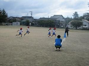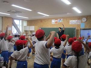 1・2年生は運動会に向けてかけっこや表現を頑張っています。冷房の効いた部屋や木の陰て休ませながら練習していました。