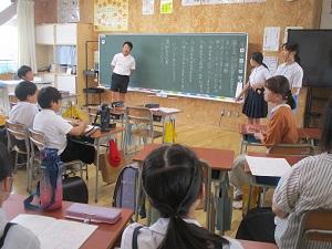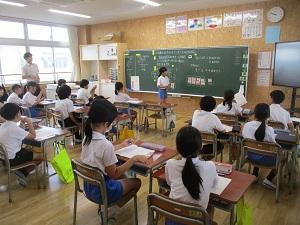 3・4年生は算数を頑張っていました。3年生は大きな数(一億までの数)、4年生はわり算の学習をしていました。どちらの学年も自分たちの言葉で何とか説明し、学び合う学習を進めていました。
