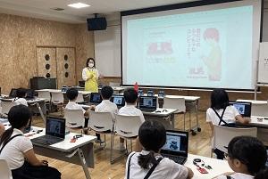 七塚っ子は今日から2日間、ゲストティーチャーとしてフリーアナウンサーの松田亜希先生をお招きし、全学年が「美しい日本語講座」の授業を受けていきます。