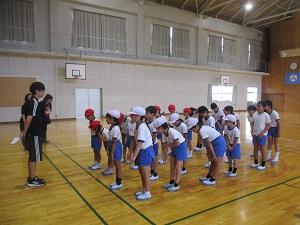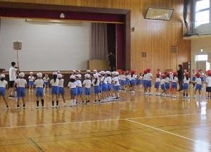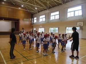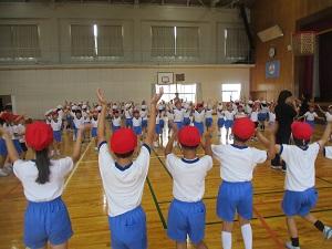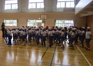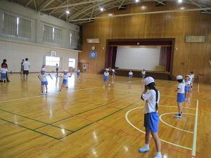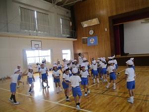 2024年9月19日 10時32分今日は雨が時々降るとっても蒸し暑い1日でしたね。そんな中、1・2年生は体育館で団体競技の玉入れの練習をしていました。音楽に合わせて、ダンスをした後、みんなで玉を入れるというスタイルで、とってもかわいい玉入れでしたよ。