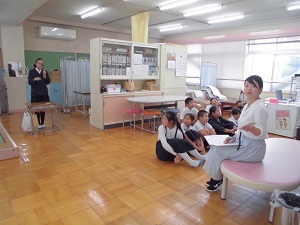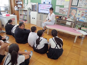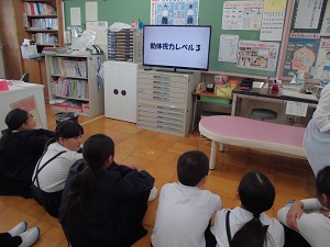 今月の視力検査に合わせて、養護教諭が保健指導も行っています。