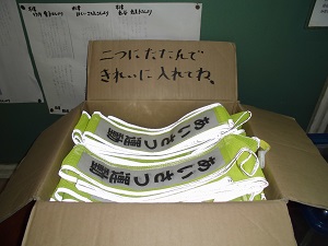 あいさつ運動後、タスキをきれいに片付けているのも、七塚っ子の素敵なところです。