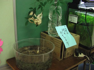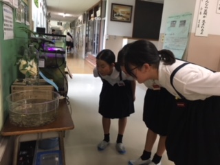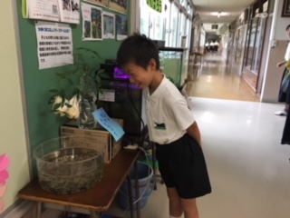 先週から児童玄関前に白い泡状の物体が…地域の方からいただいたものです。子ども達は、何だろうと不思議に思っていたようですが、今週たくさんの小さなオタマジャクシが生まれ、びっくりしてのぞき込んでいます。子ども達の知的好奇心を揺さぶる材料をご提供いただき、ありがとうございました。