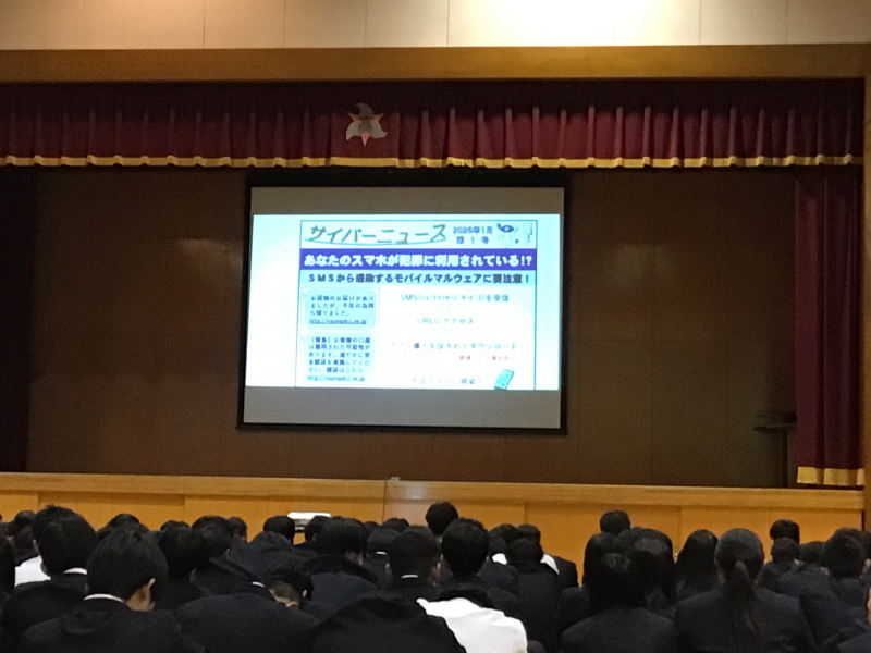 2025年5月13日 09時12分5月7日(水)6限目に防犯教室を行いました。七尾警察署生活安全係長の清水勇輔さんを講師としてお迎えし、サイバー犯罪対策についてのお話がありました。