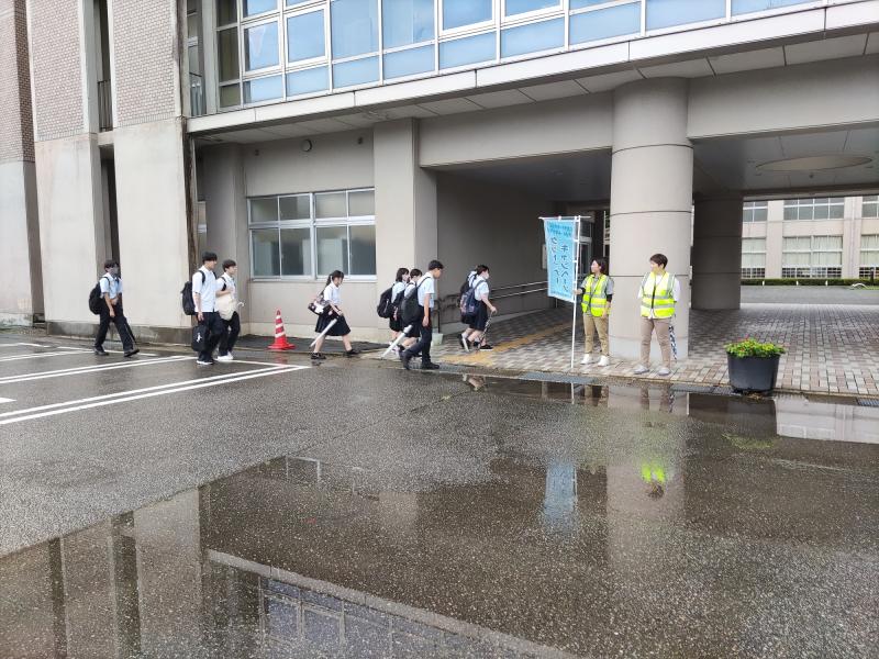 送り迎えで校地内に入って良いのは、日没後、暴風雨、雷鳴時です。(ただし、生徒のケガ、体調不良時等はこの限りではありません。)生徒の安全確保の面から危険ですので、校地内に入らず、正門ロータリーでの乗り降りをお願いいたします。