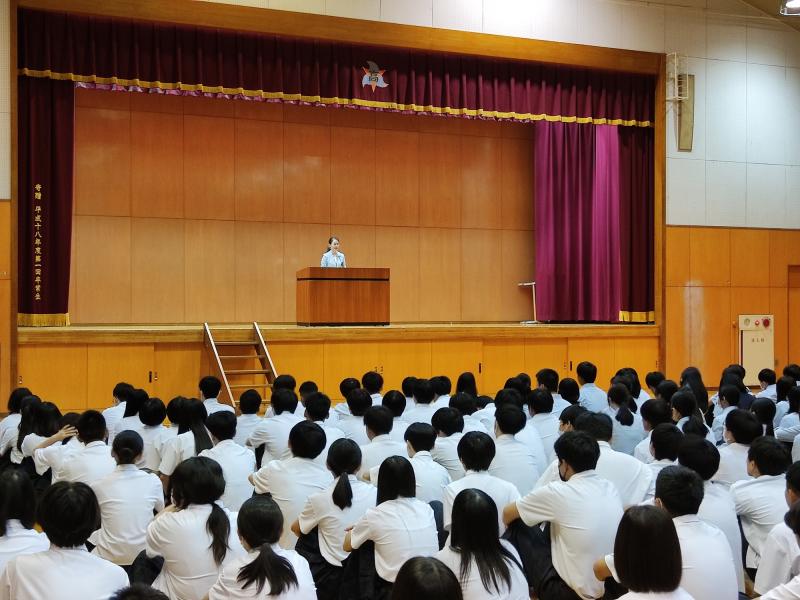 その後の全校集会では、生徒指導課、教務課、保健環境課より注意や心構えについて話があり、2学期がスタートしました。