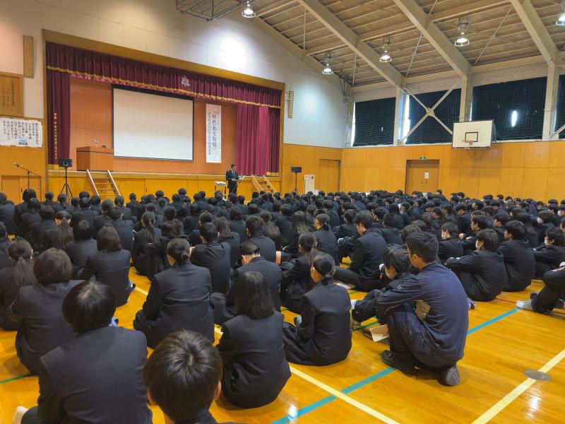 式典の後は、第1期生の県立大学講師の浅野桂吾氏による講演会が開かれ、本校を卒業してから大学の講師として研究を続けるまでの道のりや、生徒達に「未知を楽しむ」ということを伝えていただきました。