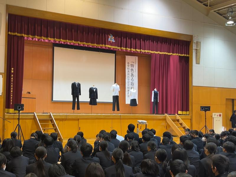 2023年11月8日 10時13分約1年間、検討してきた新しい制服が決まり、教育ウイークで全校生徒、保護者にお披露目されました。機能性、デザイン性、費用について何度も検討を重ねました。