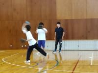 安全に配慮した、手製のボールを使っています。みるみるきれいなフォームになっていきました。