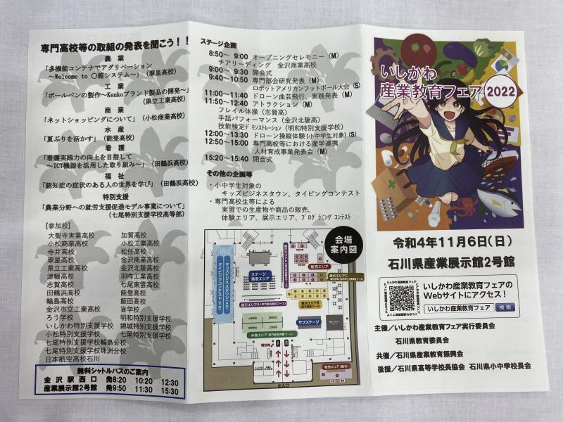 2022年11月6日 08時48分本日11/6いしかわ産業教育フェアが産業展示館2号館で開催されます。