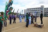 全校生徒がグラウンドに集合し、午前9時の開会式後、団対抗戦で得点を競いました。