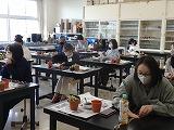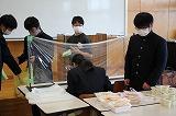 すべてのことに感染症対策が施されました。2・3年生が担当した模擬店については、昨年度に引き続き調理済みのものを販売する方式でした。生徒たちは、学年ごとに設置された引換場所でクラスごとに順番で受け取ったあと、各教室で飲食し、持ち帰りは不可としました。