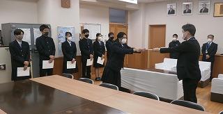 そして本日5日(金)の放課後に認証式がありました。新型コロナウイルス感染症防止のため校長室で開催し、校長先生から役員一人ひとりに任命書が手渡され、励ましの言葉がありました。