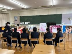 学校に帰ってきてから、ミニ講評会を行いました。いつもは自分の思いや考えを絵で表現していますが、その絵を言葉で見る人に説明するのはとても難しく感じました。しかし、作品の説明を聞くことで、作者の思いや考えが分かり、見方・感じ方が変わり新たな発見もありました。生徒は、作品の説明を聞きながら質問したり、感想を言ったりと意見交換ができ、より次の作品への創作意欲がわきました。