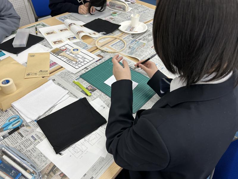この制作交流会は、令和9年度の全国総文いしかわ大会に向けて企画されました。石川県の魅力を、制作を通して全国の高校生に伝わるように、今回は金箔を使ったポーチの制作をしました。