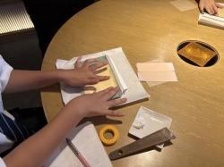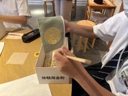 8/22(金)には、大会で行われる制作交流会に向けて、今井金箔でポーチの制作をしてきました。