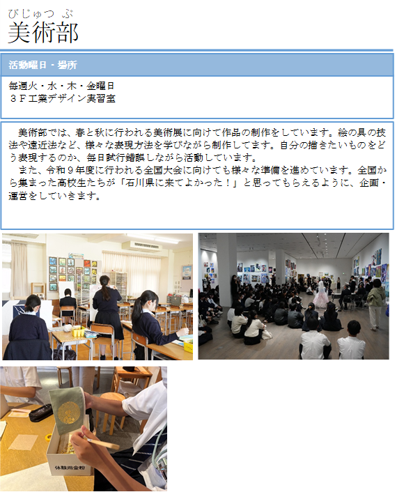 2025年9月4日 09時28分現在美術部では「2027いしかわ総文」に向けて様々な活動をしています。