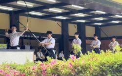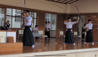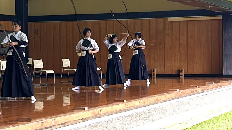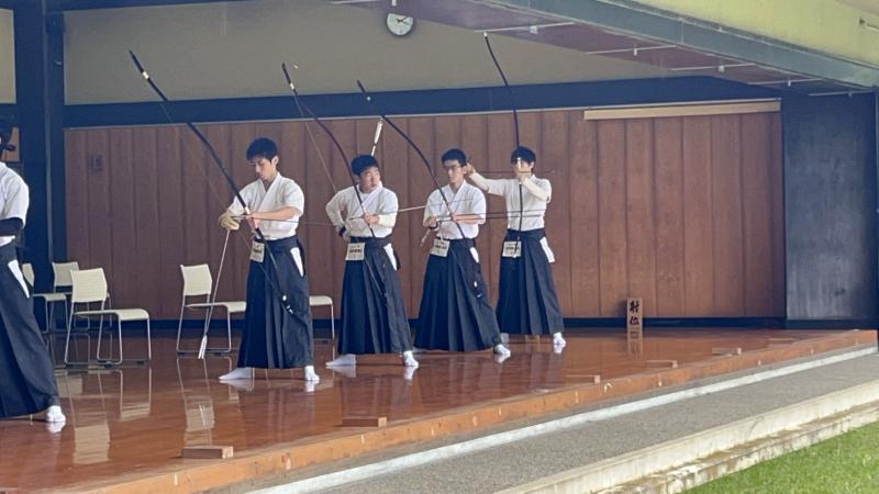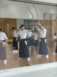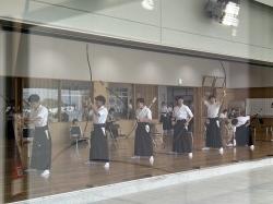 夏休みの弓道部は暑い中ですが、日々練習に励んでいます。
