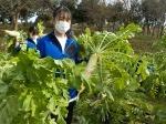 しっかり植わっているので、抜くのが大変です。収穫してみると、「太っと~い」「ずんぐりむっくりや!」「短かっ」「なかなか抜けーん」と声が聞こえてきます。太さは10㎝以上、重さを測ると平均1.46㎏ありました。