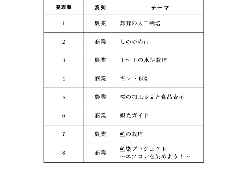 本校からは校内予選を突破した「しののめ市」メンバーが参加しました。約700人の来賓や生徒の前で発表する大舞台でしたが、七尾東雲高校で学んできた商業教育と農業と連携した活動の様子が伝わる発表となりました。