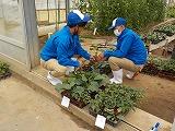 苗づくりは、早いものでは2月の下旬から播種(種まき)が始まり、発芽・鉢上げ(ビニールポットへの植え替え)・追肥(肥料やり)・ポットの間隔広げなどの世話をし、出荷できるまでの大きさに生長しました。