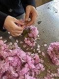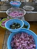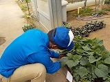 2年生「野菜」の実習では、イモのツルを切り取り、規定の長さに切りそろえ、本数を数えて束ねました。①種類を間違えないこと、②一本一本長さを揃えること、③数を間違えないことに注意し、丁寧に調整作業を行いました。