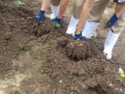 芋を一つひとつばらしていくもの大変でしたが、「煮物や豚汁に入れたら、おいしいなあ」などと話しながら収穫を進めました。