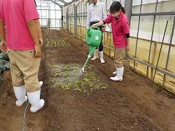 また、たくさんの方に生徒が育てた野菜や花を配布することができました。生徒も直接自分たちが育てたものを配る機会は滅多にないため一所懸命配っている様子が印象的でした。田鶴浜町の七尾市応急仮設住宅にお住いの皆さんありがとうございました。