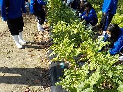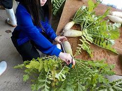 今回、葉を付けた状態で家に持ち帰りました。調理して味わうまでが農業の学習です。「おでんにして食べた。おいしかった」「葉はお味噌汁に入れたり、浅漬けにした」「(葉は)刻んでチヂミの具にした」などと報告や感想が聞かれました。