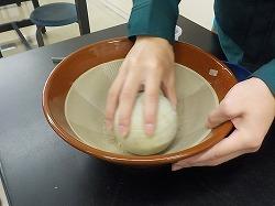 計測を終えたもみは、もみすりをします。もみの周りについている頴(えい)と呼ばれる殻を外す作業です。これはすり鉢とソフトボールを使って行いました、もみをすり鉢に入れてソフトボールで上からゴリゴリすると…あら不思議、殻が外れて玄米が出てくるのでした。その玄米を集め、玄米の重さを測って今回の実習は終わりです。