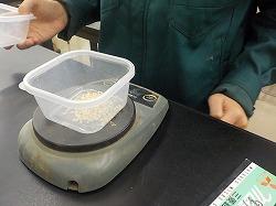 収穫したものは規定量を測って、袋詰めをします。その際、傷や虫食い、色の薄いものなどが入らないようによく見なければなりません。