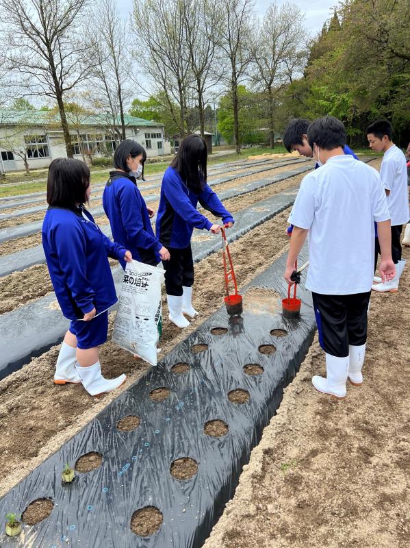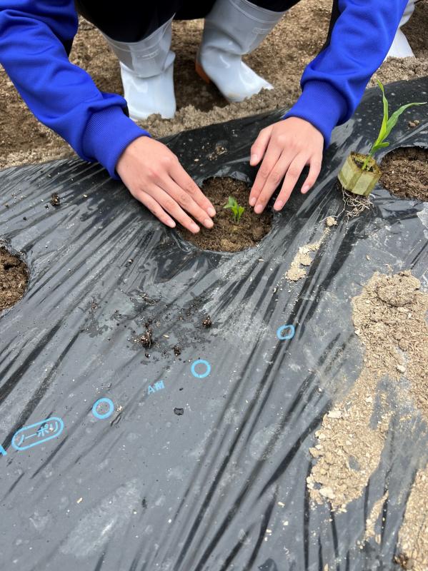 ポイントで生徒たちは気を付けながら定植をしました。最後にたっぷりの水をあげて定植作業は終了です。